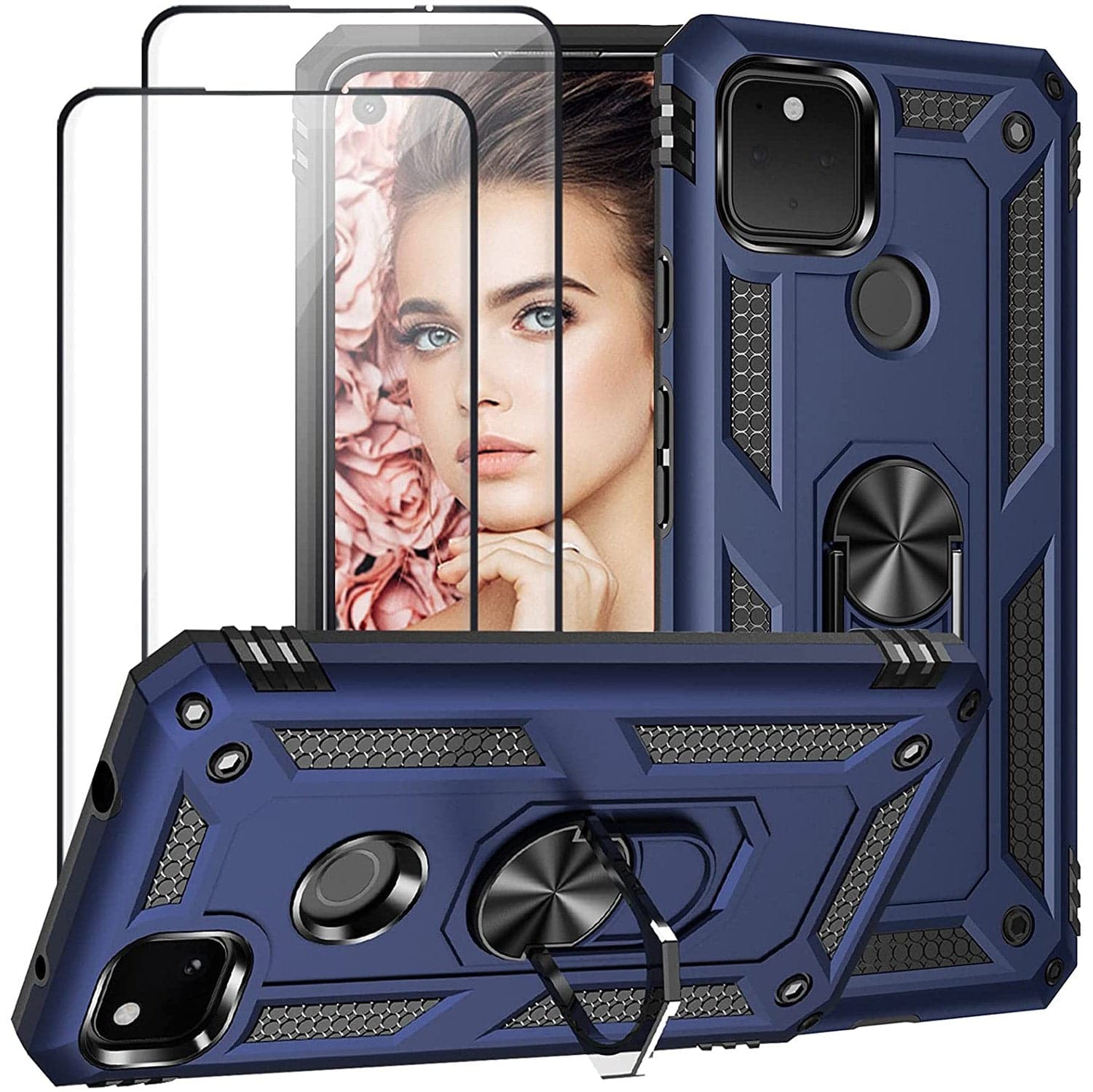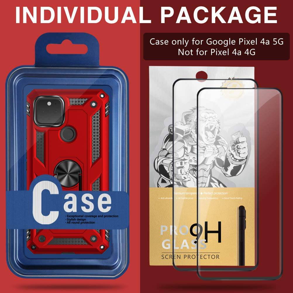 2022 Luxury Armor Ring Bracket Phone case For Google Pixel 4A With 2-Pack Screen Protectors