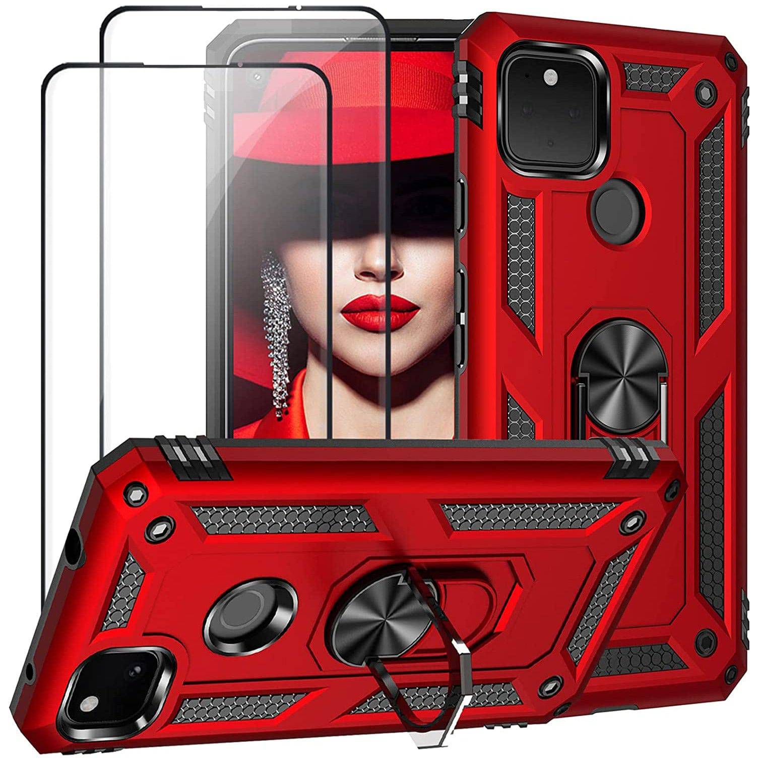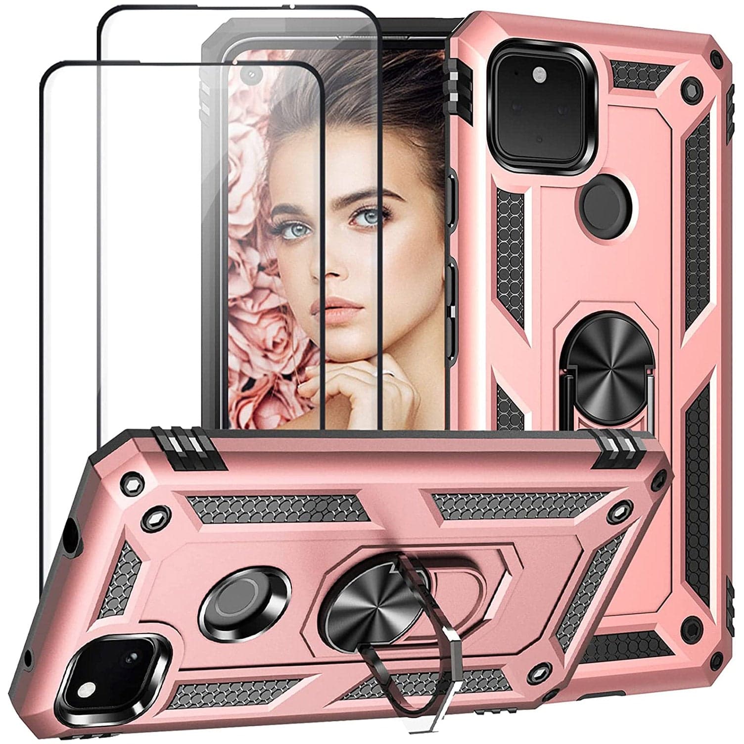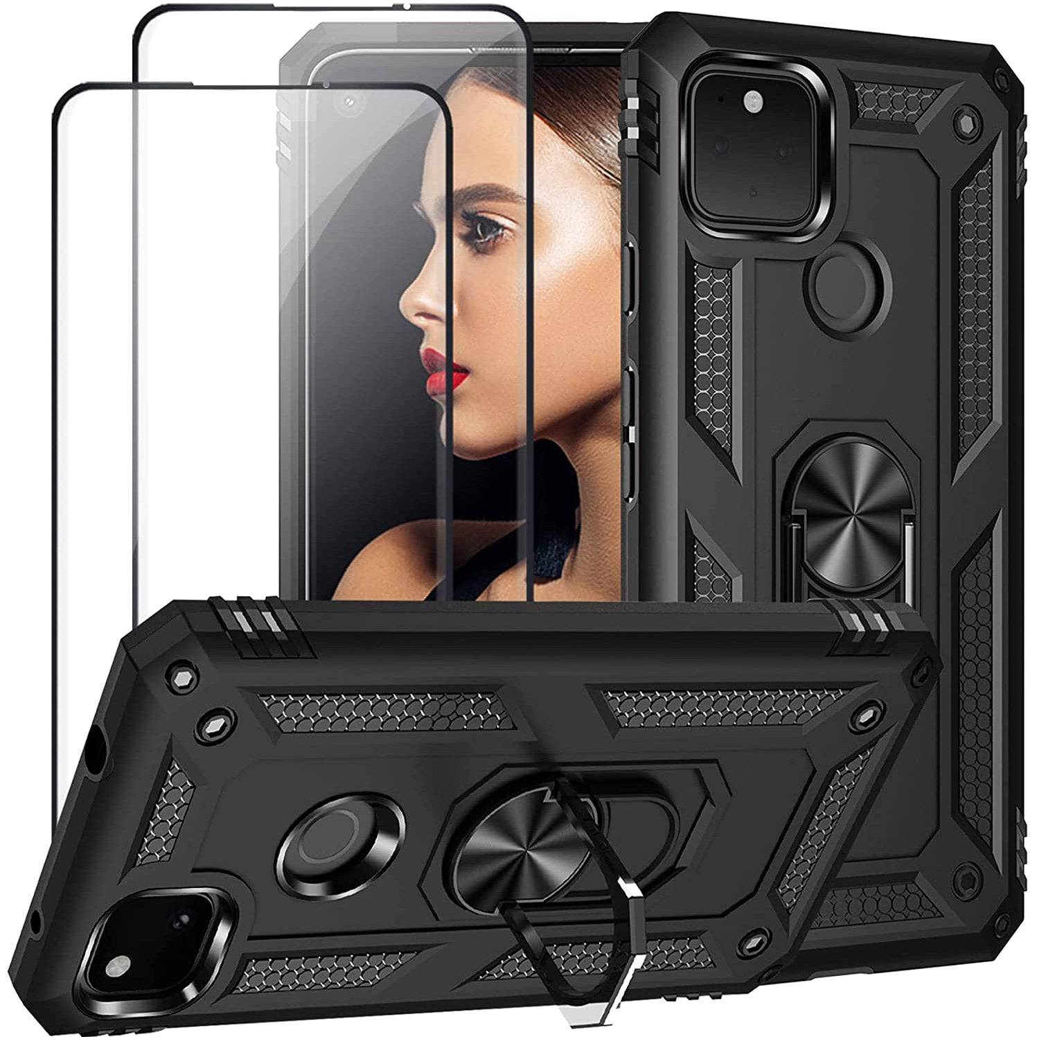 2022 Luxury Armor Ring Bracket Phone case For Google Pixel 5 With 2-Pack Screen Protectors