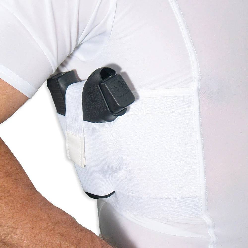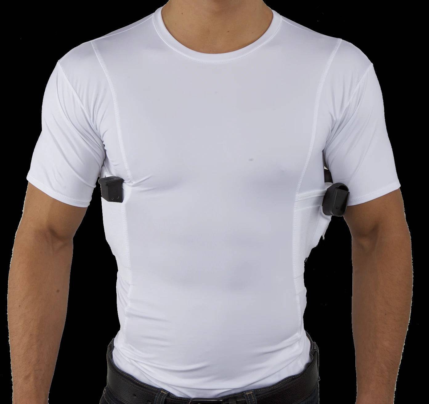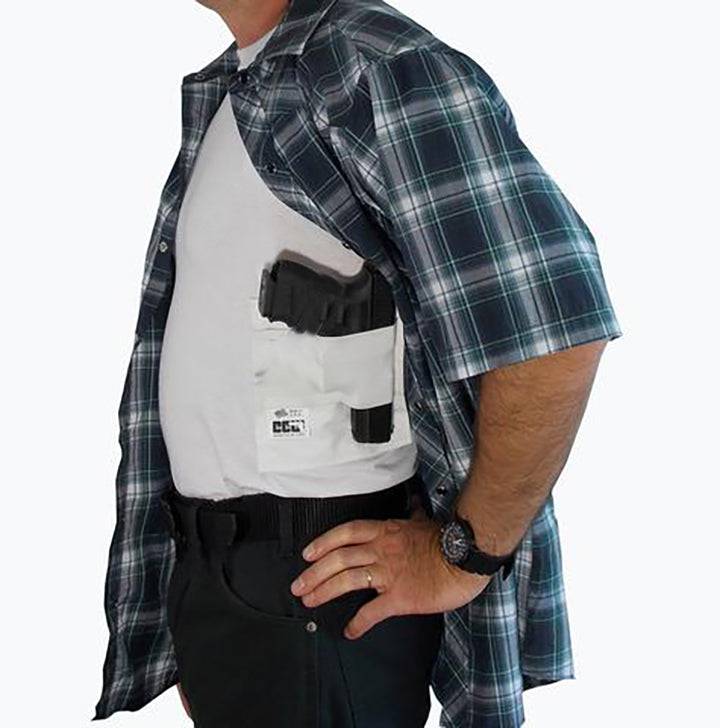 SUITABLE:Â Allows immediate access at your weapon when wearing button down shirts or pullovers. Features two identical holsters with extra space perfect for magazines, documents or cell phone size device, the most comfortable concealed carry method for any self-defense handgun.