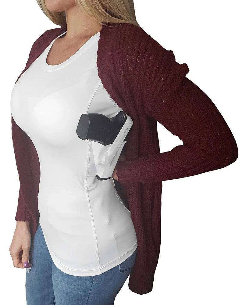 QUICK DRAW:Â concealment pockets, one on each side. Provides immediate access to your personal protection handgun and other accessories, under your button-down shirt or pull over.