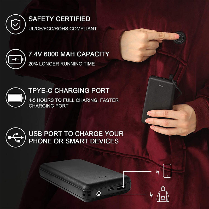 Libiyi Heated Wearable Blanket Hoodie with Battery Pack