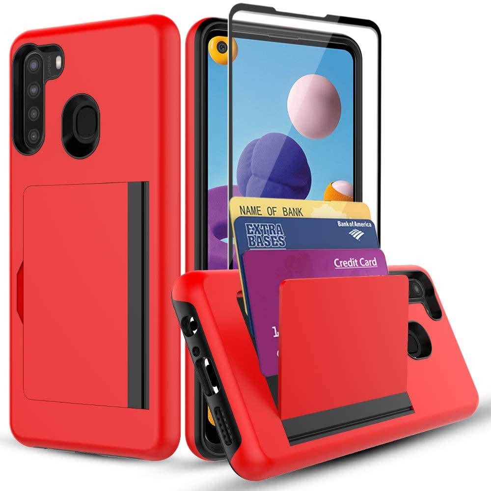 Armor Protective Card Holder Case for Samsung A21(US) With 1 PACK Screen Protector