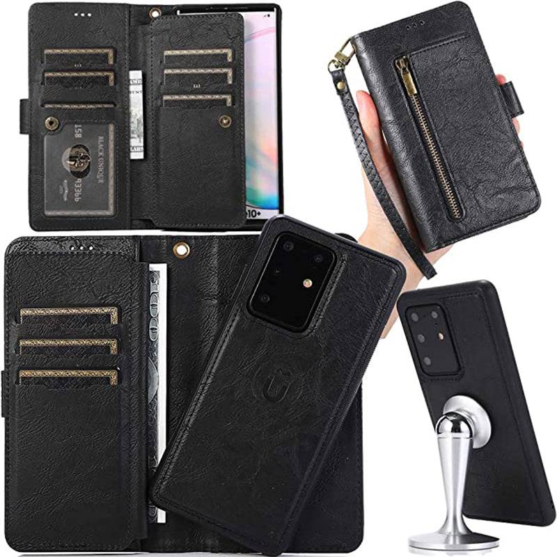 Detachable Flip Folio Zipper Purse Phone Case for Samsung