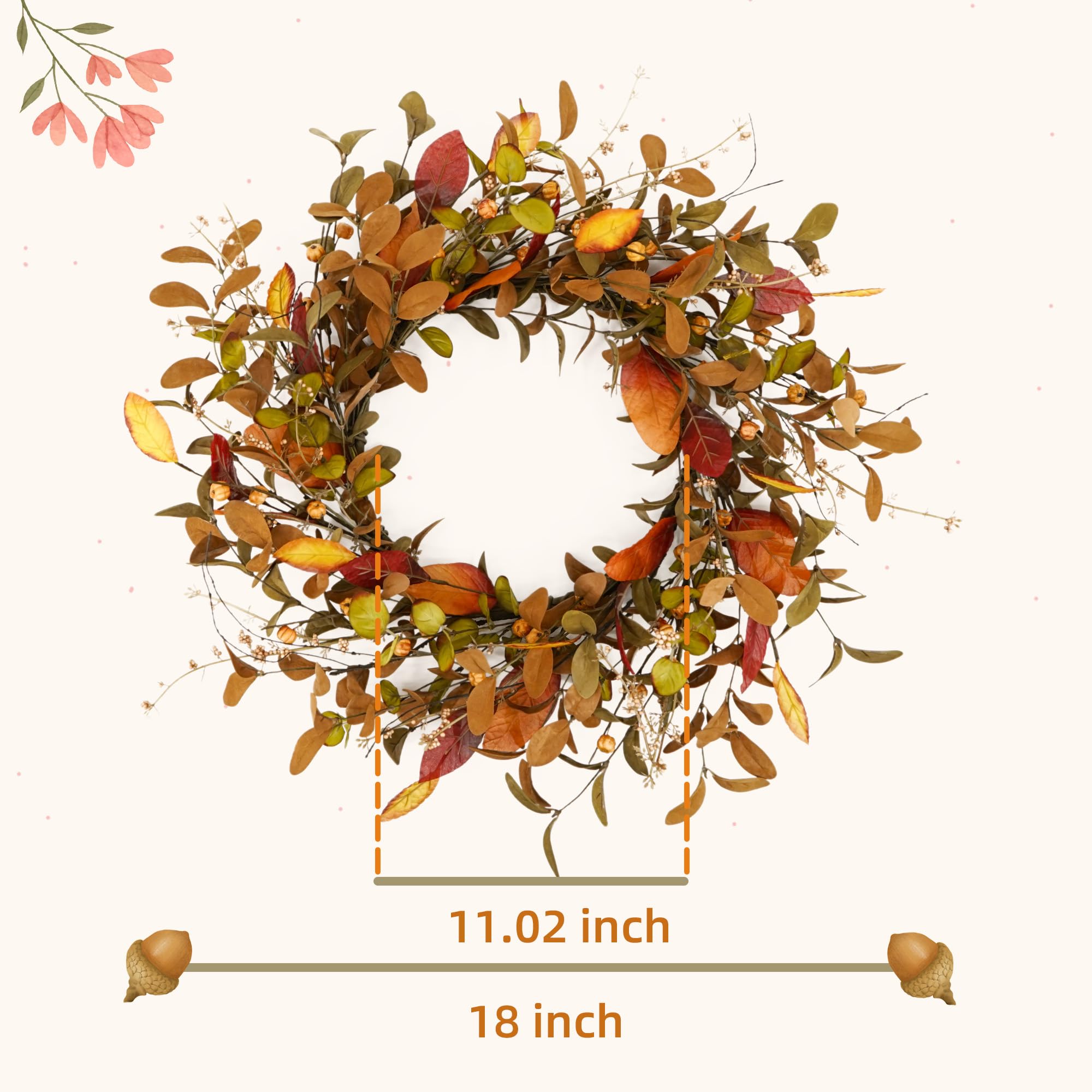 - 【Suitable Size】Fall wreath is 18 inches in diameter. After a unique arrangement. the wreath appears fuller and larger. This fall wreath is simple and elegant. with vibrant colors and vivid natural forms. creating a natural atmosphere