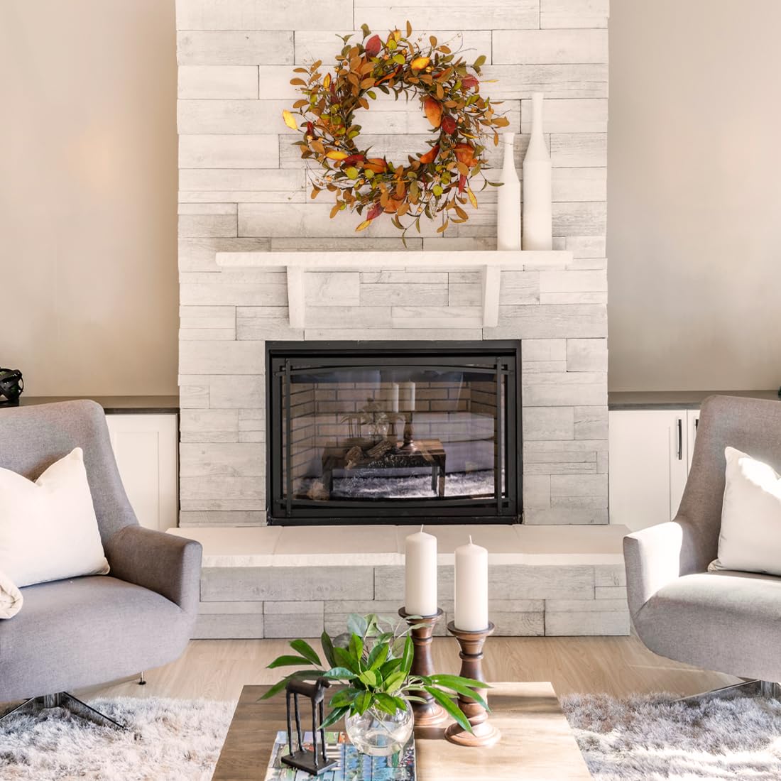 - 【Multipurpose】Wreaths are great for front door decorations. porches. windows. walls. and farmhouse decorations. both indoors and outdoors. No matter where you place it in your doorway. there's plenty of room. Fill your home with autumnal vibes