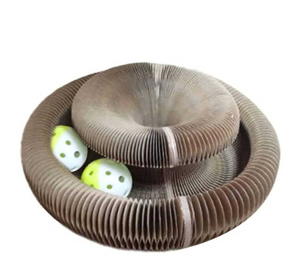 This scratch board comes in flexible shapes with a round bell-shaped ball built into the middle of the scratching board, making a pleasant tinkling sound when rolling. It can be used as a bed, can be folded into a bone shape, one board is multi-purpose, and leisure and entertainment are integrated.