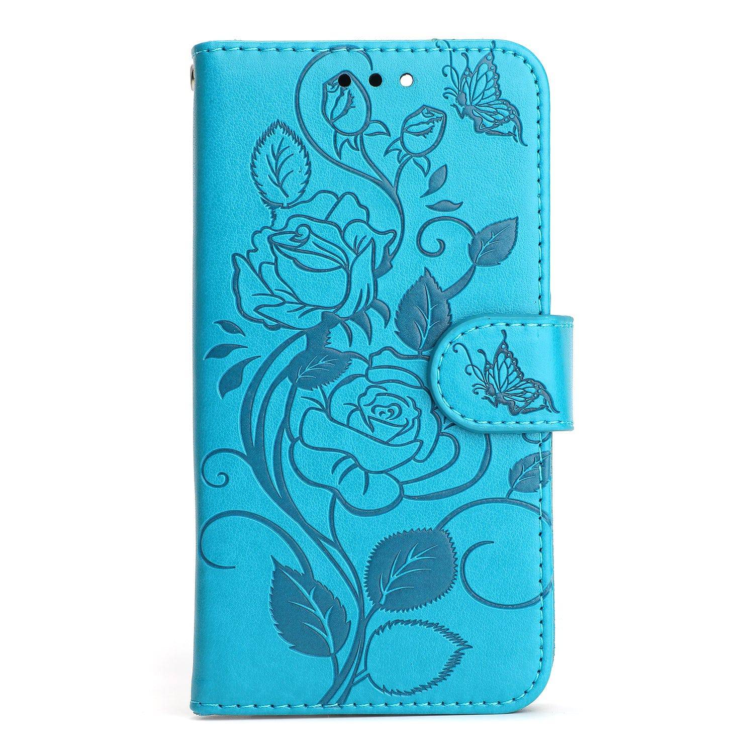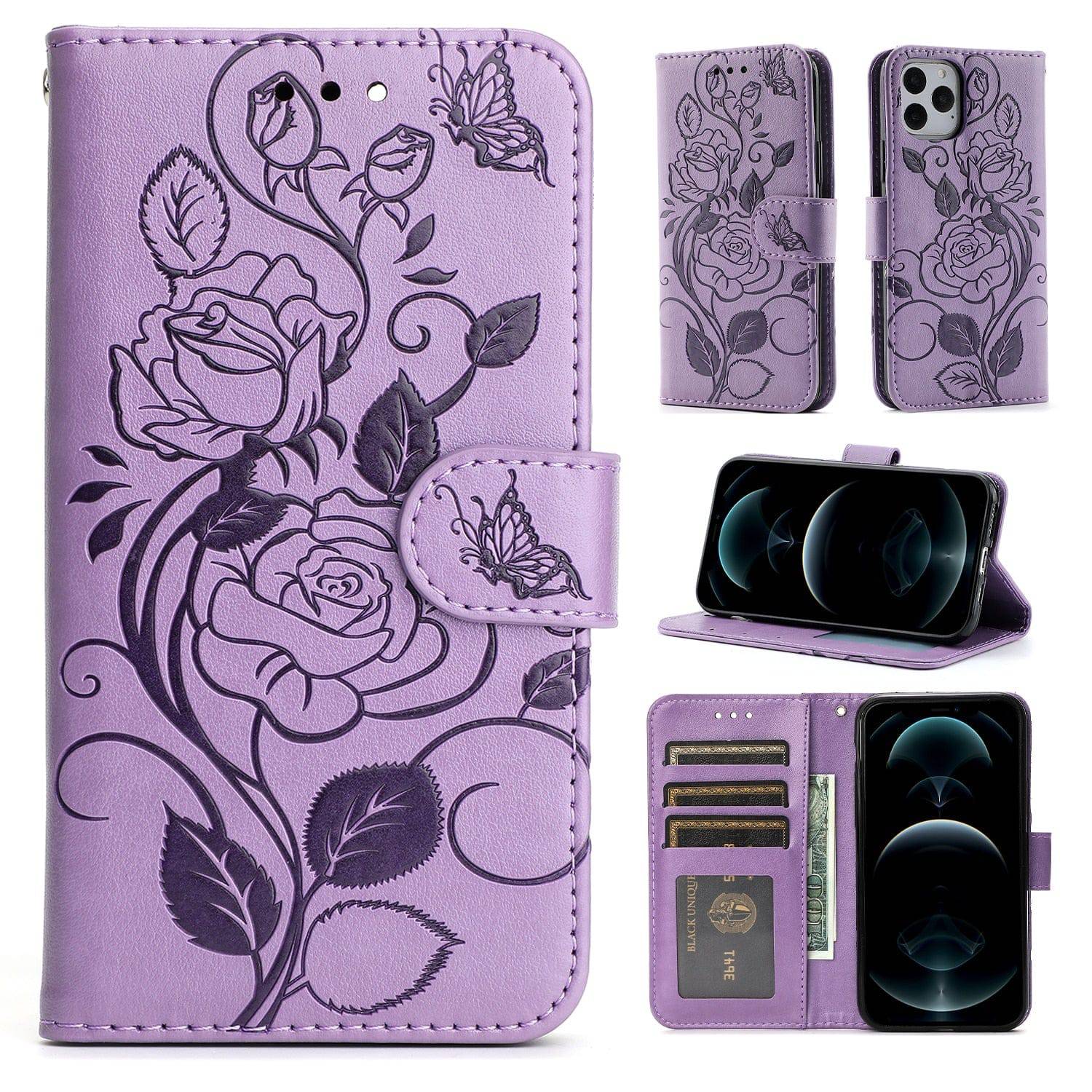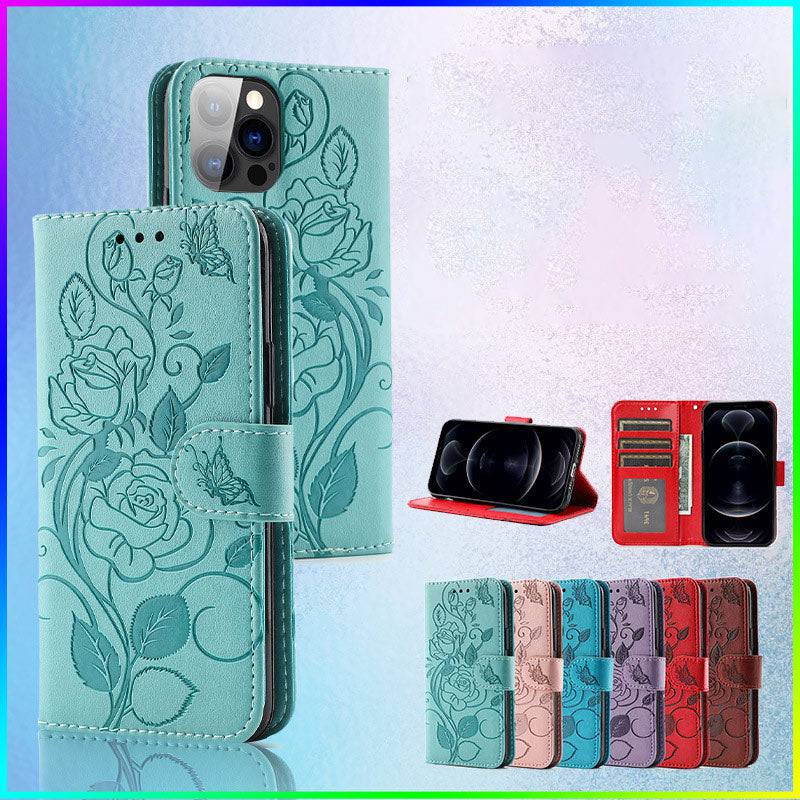 Étui portefeuille pour iPhone avec rose en relief 3D