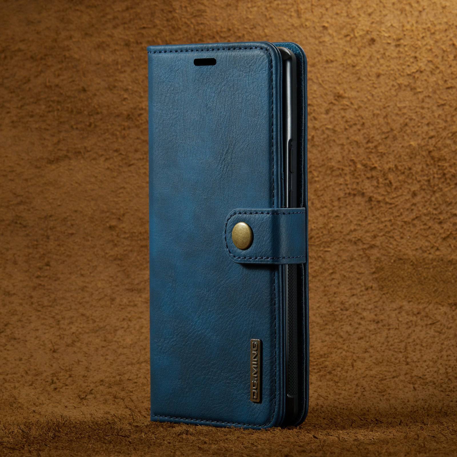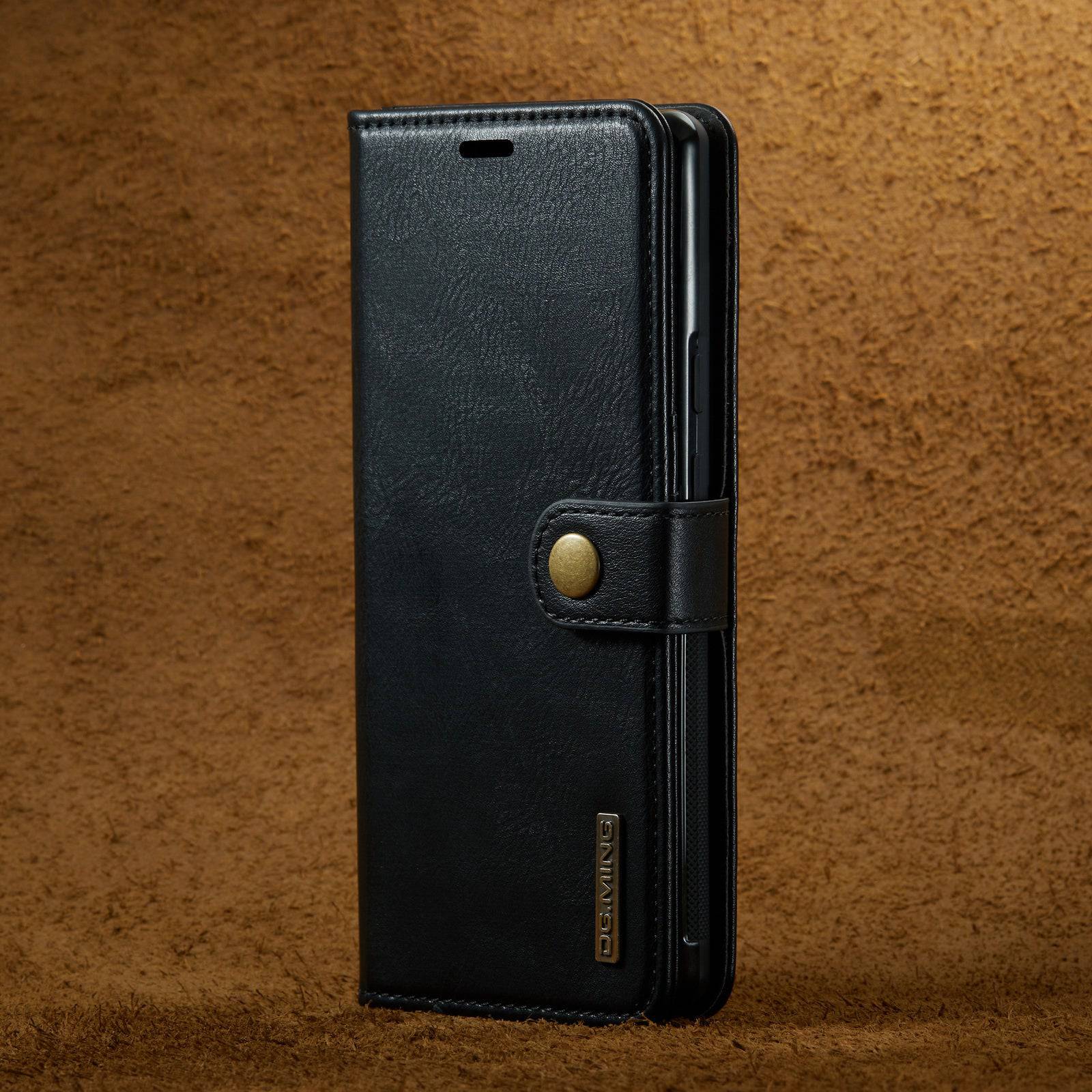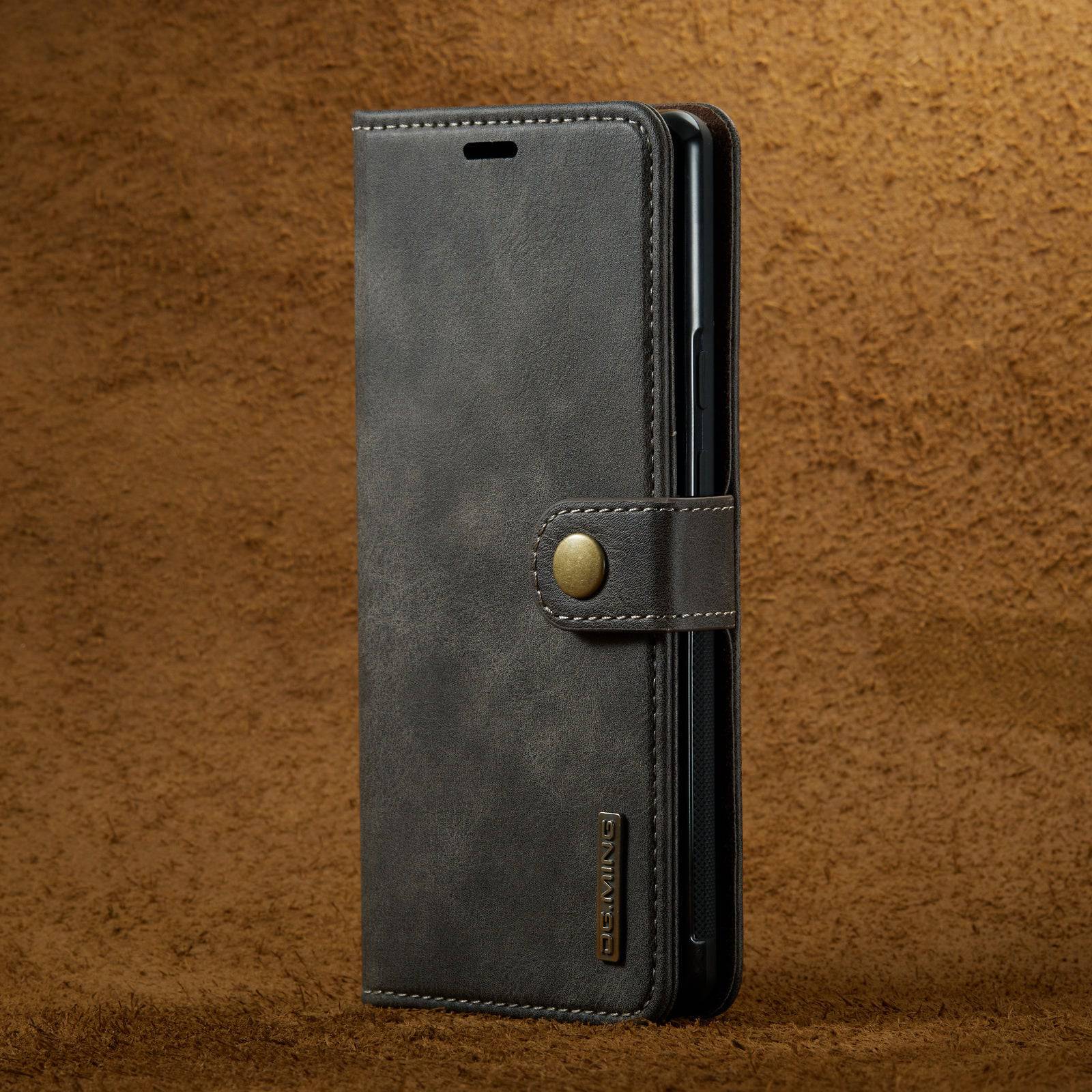 3. Cet étui présente un design 2 en 1 avec une housse portefeuille en cuir fendu et une coque arrière amovible recouverte de cuir.