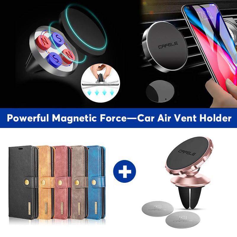 ☑️ Cet étui présente un design 2-en-1 avec une couverture portefeuille en cuir fendu et une coque arrière amovible recouverte de cuir .