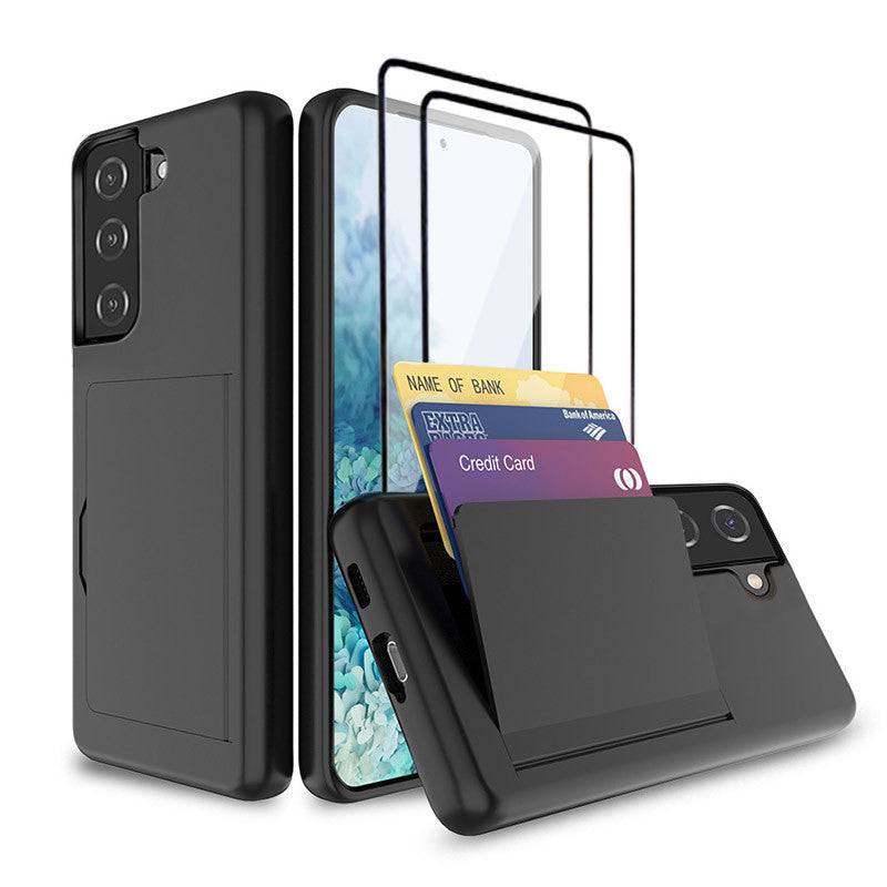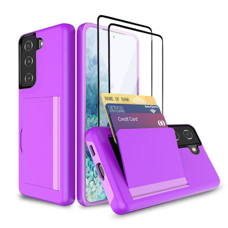 Armor Protective Card Holder Case for Samsung S21(5G) With 2-Pack Screen Protectors