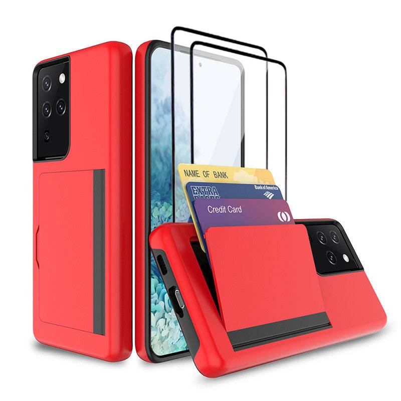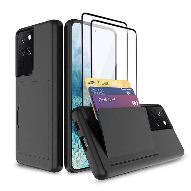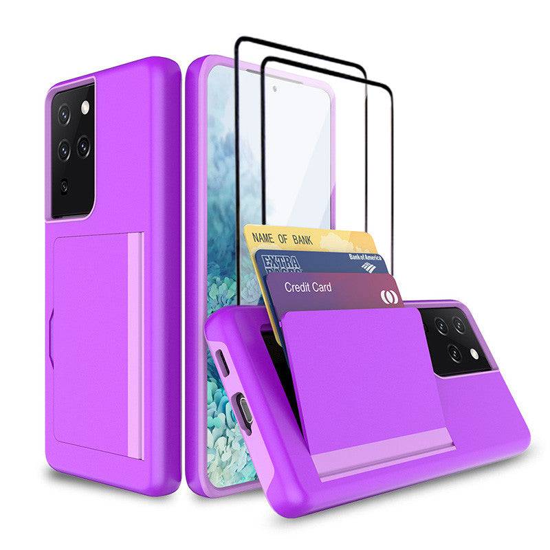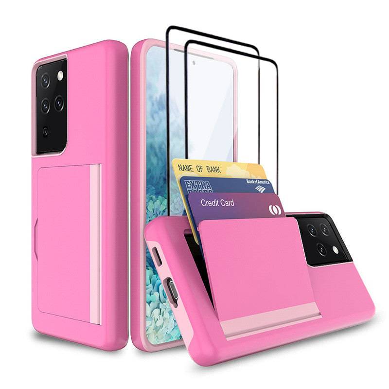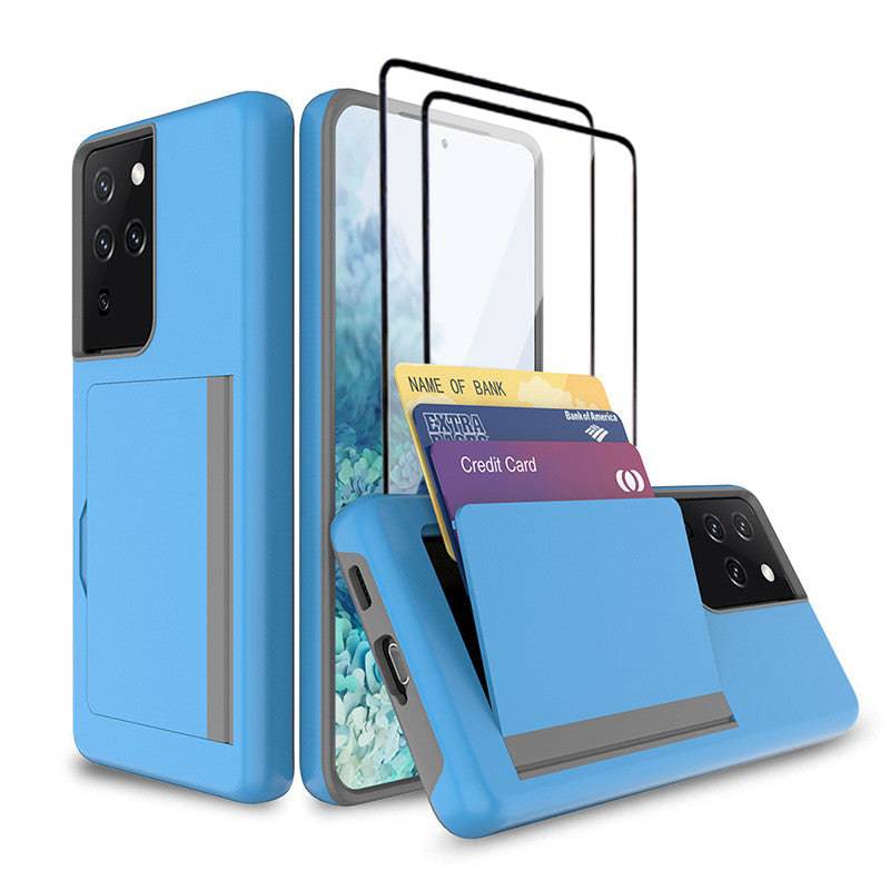Armor Protective Card Holder Case for Samsung S21 Ultra(5G) With 2-Pack Screen Protectors