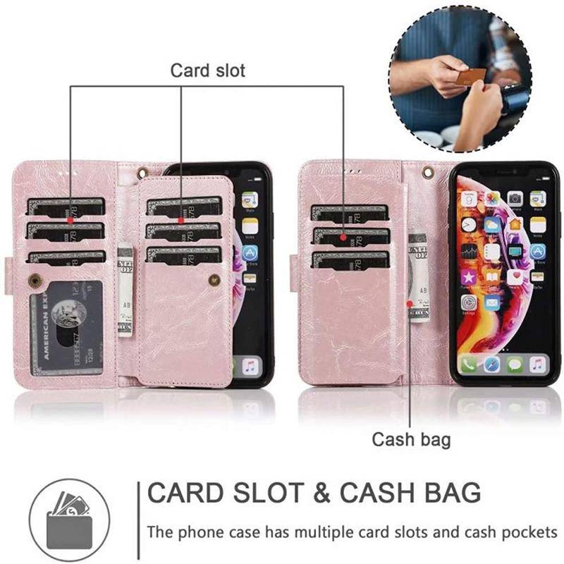Detachable Flip Folio Zipper Purse Phone Case for iPhone 13 Series