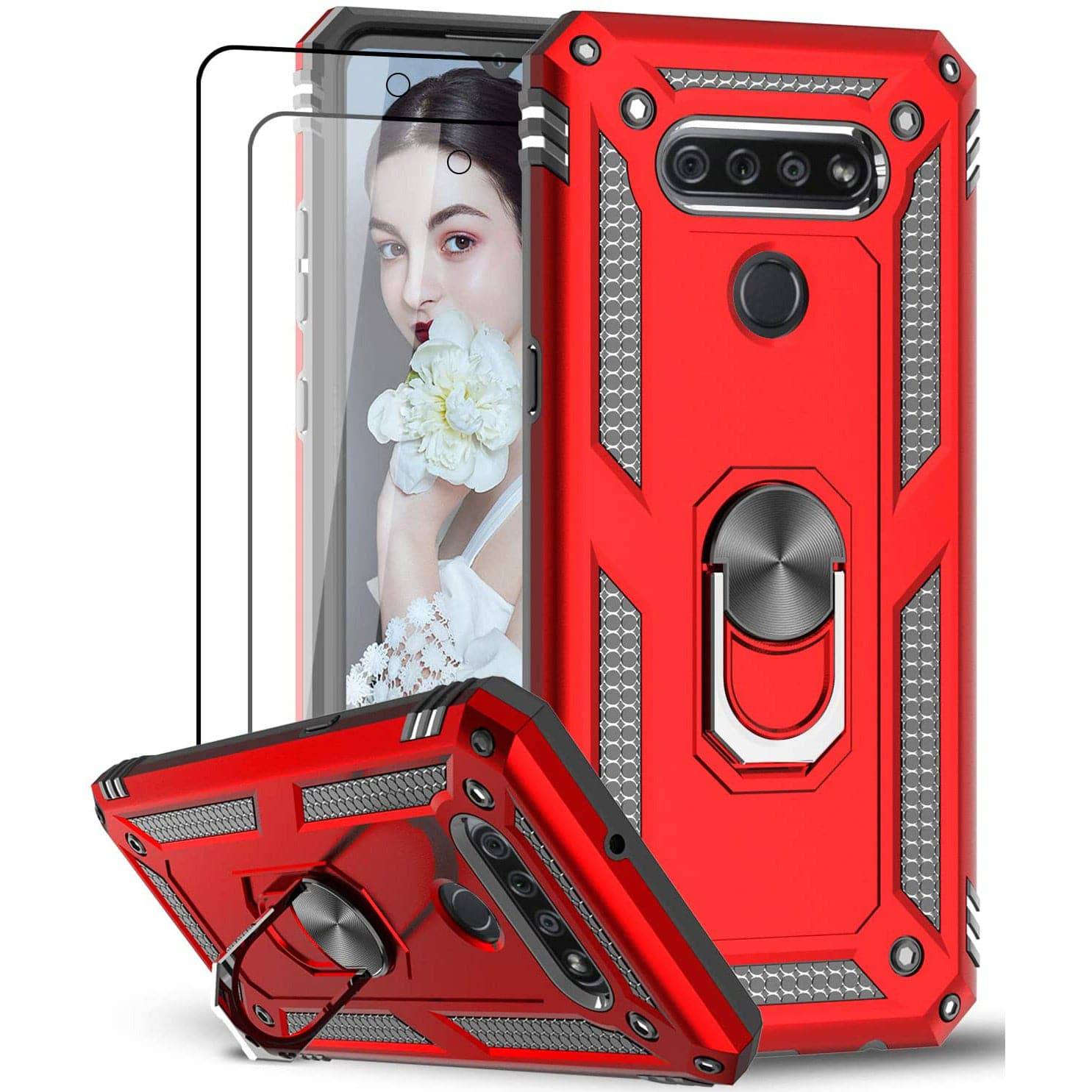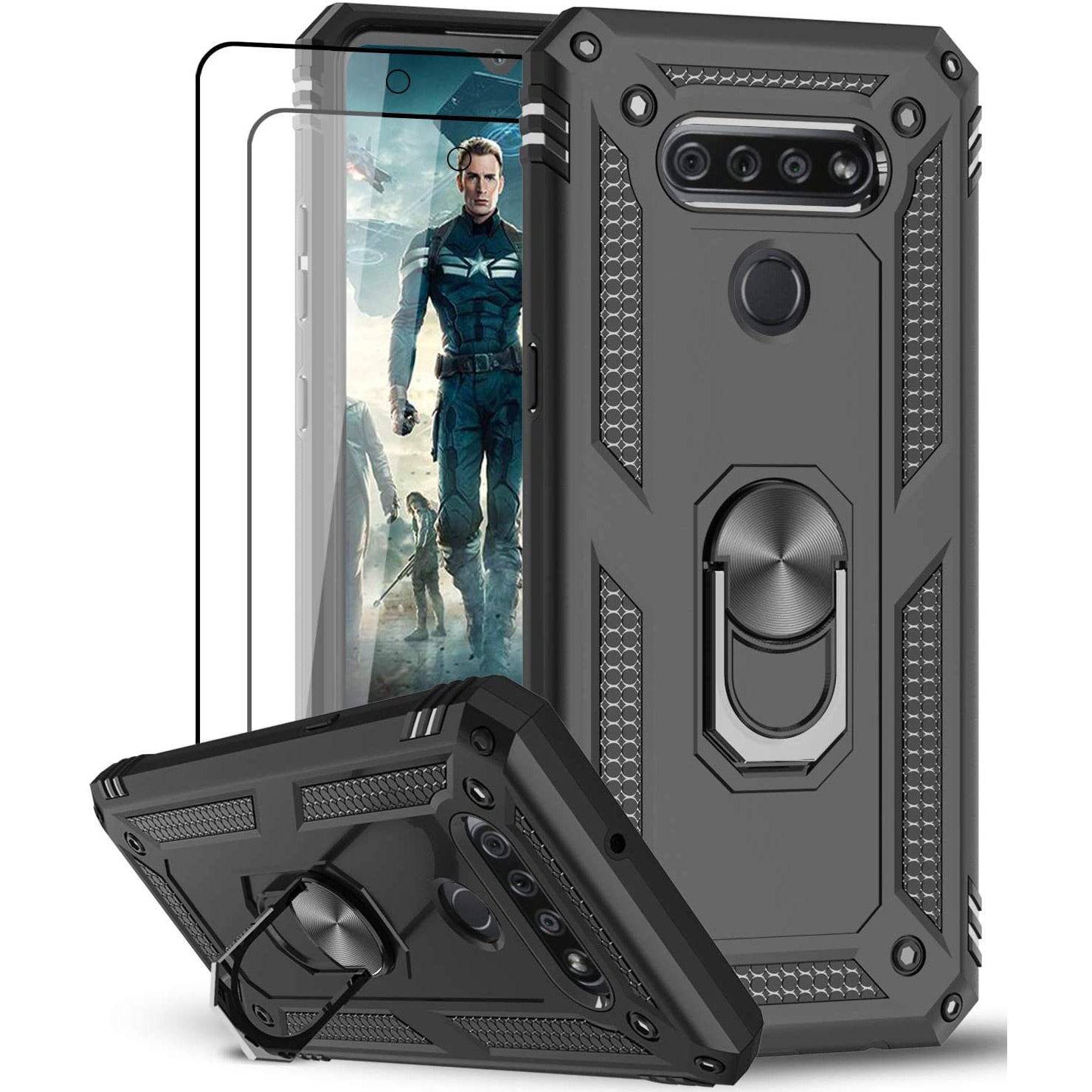 Luxury Armor Ring Bracket Phone Case For LG K51 With [2 Pack] Screen Protectors