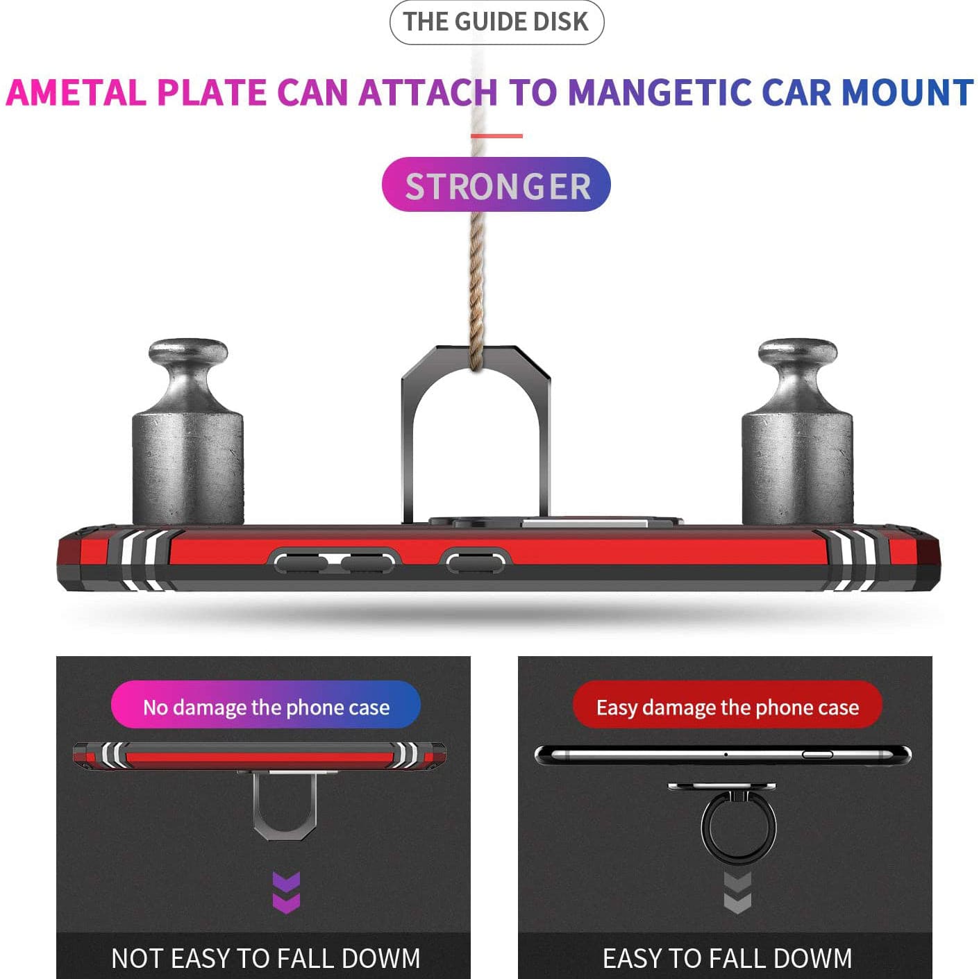 Answer: Yes, it is built-in metal magnetic sheet for stable adsorption, which can be directly adsorbed to the magnetic car mount holder.