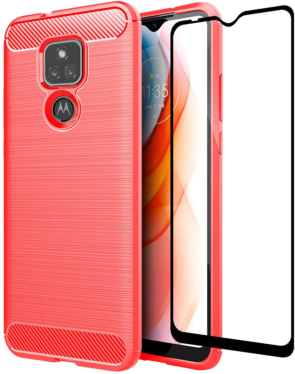 Luxury Carbon Fiber Case For Moto E7 With Screen Protector