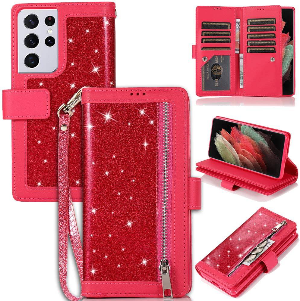FEATURES: ▶[COMPATIBLE WITH]: Specially designed for [Samsung Galaxy S21 Ultra 5G 6.8Inch].▶[LARGE CAPABILITY+WRIST STRIP]:Inside features 9 card slots,1 zipper coin... Read more Read more