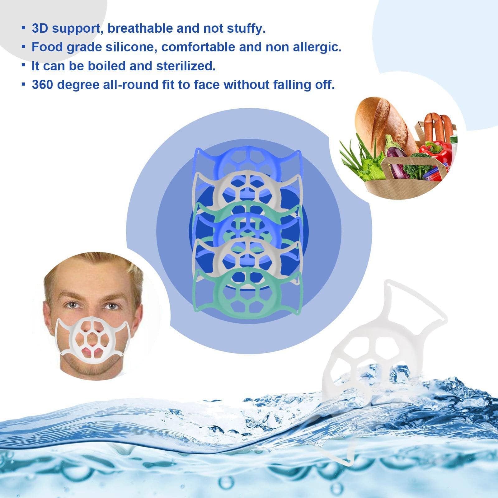 - Material de alta qualidade : suporte de suporte de moldura facial feito de material de silicone de qualidade alimentar, macio, suave e confortável, lavável e reutilizável.