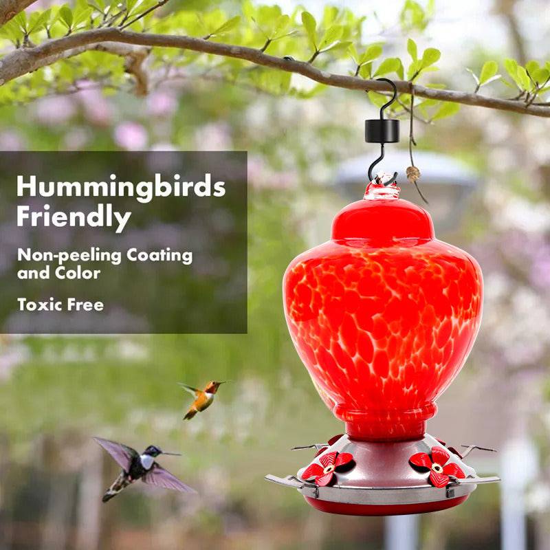 Alimentador de colibri de vidro soprado à mão - 38 onças