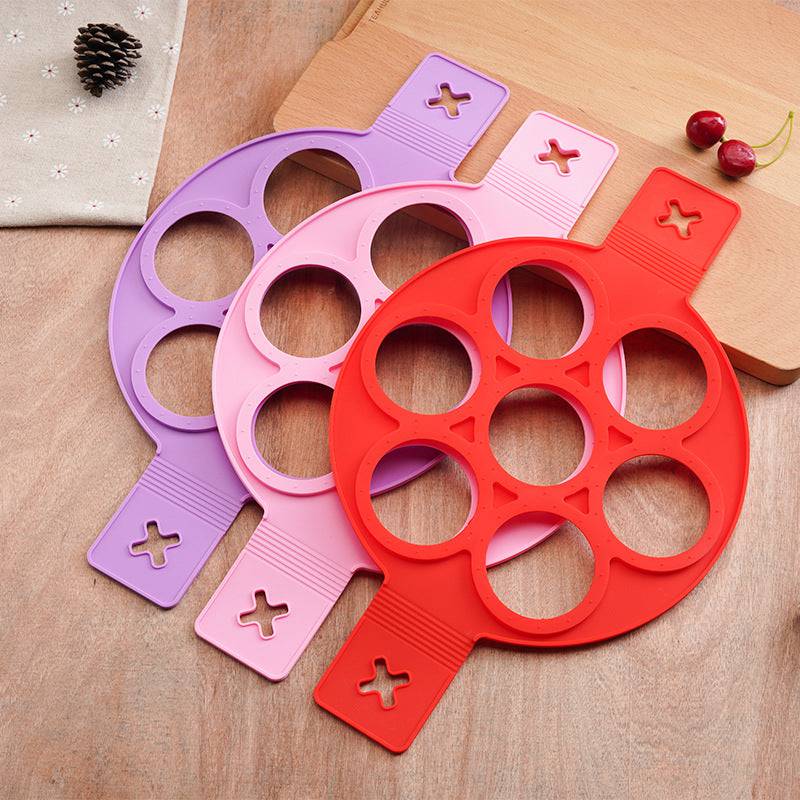 Este molde de panqueca antiaderente tem 7 anéis redondos, alimentos separados de cada anel com diâmetro de 3 pol., uma maneira fantástica e rápida de fazer panquecas de tamanho perfeito.